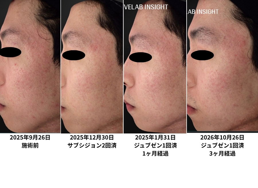 普通の写真や体感レベルで言えば、明らかにジュブゼン1回でクレーターが改善した感覚はあります。