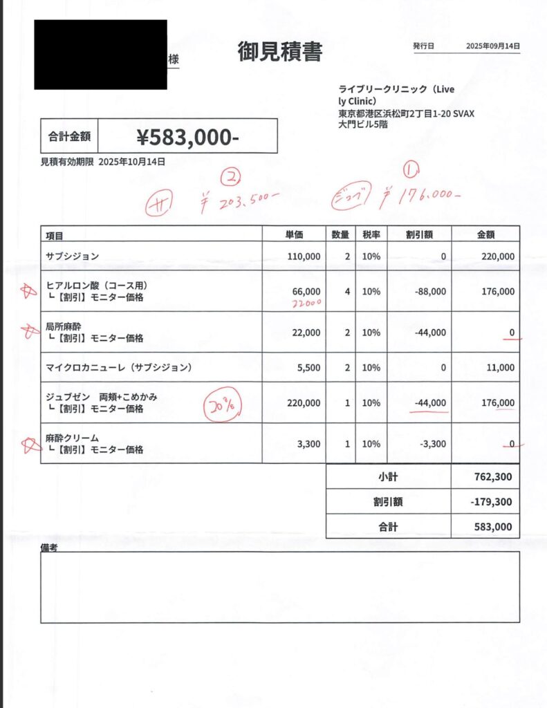 ライブリークリニックでの施術代が知りたい