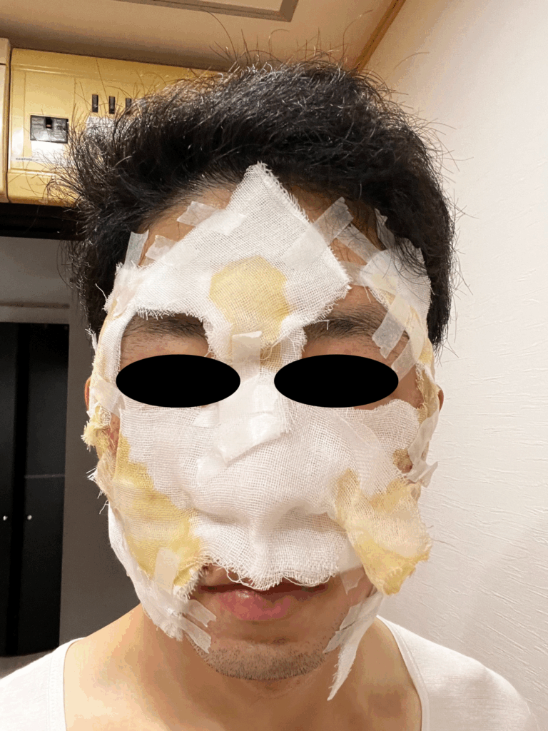 閲覧注意  ←顔中ガーゼまみれの写真です。